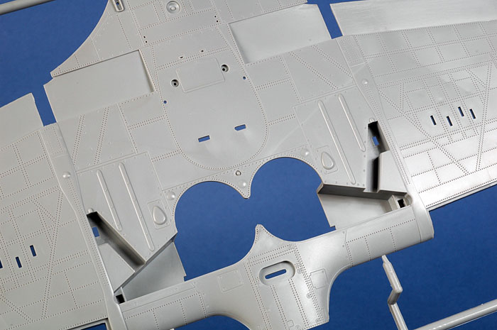 recessed panel lines on each wing. The rivets are smaller and sharper than
