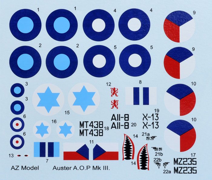 Decals look very good with spot-on register, colour density and minimum carrier film. There are markings for four aircraft, MT 438, an RAF aircraft with SEAT markings in the usual places. A11-8 is an RAAF example with blue and white roundels and fin flash plus a shark mouth and eye on the nose. Next is MZ 235, an ex-RAF aircraft flown by the Czechoslovak Air Force with Czech roundels on the wings but no fuselage marking except for a red griffin on the nose. Last but not least, an Israeli aircraft, X-13 with the usual Israeli markings in six places.