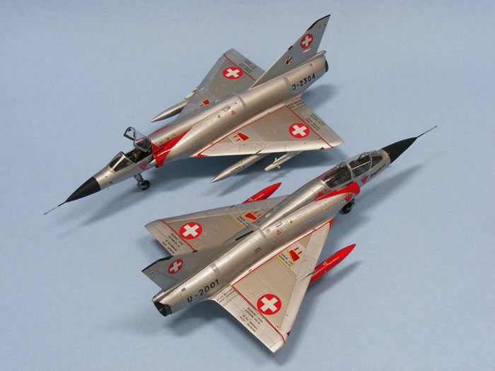 The highlight of this project was the decals. I used two decal sheets produced by Matterhorn Circle (www.mc-one.ch). They are of excellent quality, crisply printed and not translucent. Even though they are made for the Swiss Air Force’s single Mirage IIIC, they contained most of the decals I needed for my Mirages. I used the registration number from the decal sheet in the PJ kit for the Mirage IIIS. The “U” and “BS” lettering for the two-seater were the only decals I needed to produce on my computer. I sprayed a thin coat of Future floor cleaner to seal the finish and the decals. Finally I added landing gear, missiles, wing tanks, pitot tubes and antennas. At last, my Mirages were ready for display on my shelf. The PJ kits certainly have their share of shortcomings, but despite the challenges, I enjoyed this project. Nevertheless, as per Murphy’s law, now that I have finished my Mirages, a new high-tech Mirage kit is sure to be released in the near future.