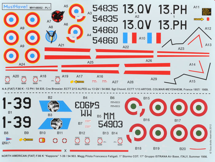 French N.A (Fiat) F-86K Serial No 13 QV/54860 flown by Sgt Chavelet of ECTT 1/13 Artois based at Colmar-Meyenheim France in 1957/59.