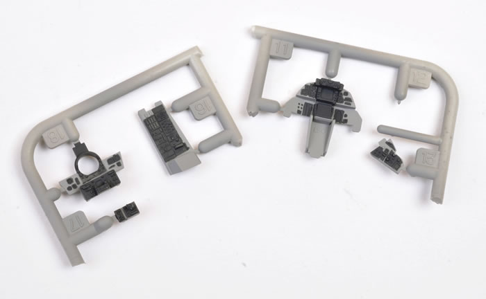 In preparing the cockpit for assembly, almost all of the parts may be painted while they are still on the sprues. This makes handling and painting parts much easier, especially smaller details.