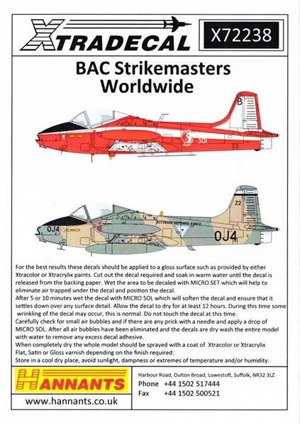 Xtradecal Item No. 72238 - BAC Strikemasters Worldwide