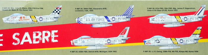 Academy released their own new-tool 1/48 scale F-86 Sabre in 2000. This added full enegine detail and open gun bays, but cockpit detail was no better than Hasegawa's earlier release. In my opinion, having laid out the sprues side-by-side, the Hasegawa kit narrowly wins in terms of surface textures and general finesse.