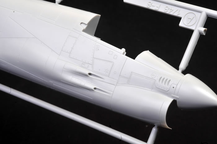 Surface detail is excellent. Vents, hatches and panel lines are crisp and fine. Some of the detail is a little soft on the bottom of the fuselage, but even in this area the features are acceptable. However, there are a large number of ejector pin marks, both raised and recessed, in visible areas of many of the smaller parts.