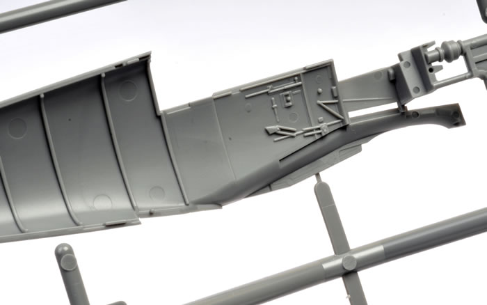 Outboard flaps, radiator flaps and the ailerons are all separate parts and may be posed to taste. The radiator flaps are cleverly designed with two sets of tabs moulded in place. One set of tabs is designed to be sliced off depending on whether the flaps are raised or dropped. The outboard flaps have a similar design feature.