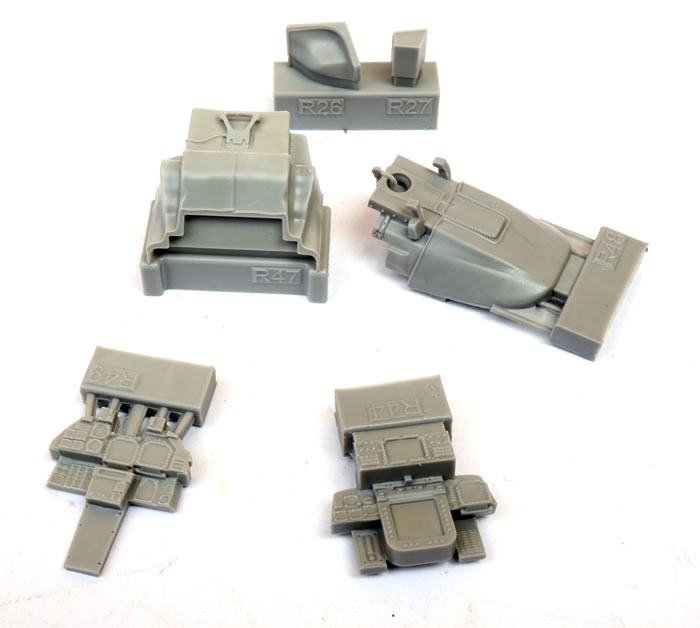 The smaller parts are cast onto narrow casting points. These will be fast and easy to remove. A little more effort will be required to free the cockpit tubs and the WSO's panel from their casting blocks, but nothing that will intimidate anyone used to working with resin parts.