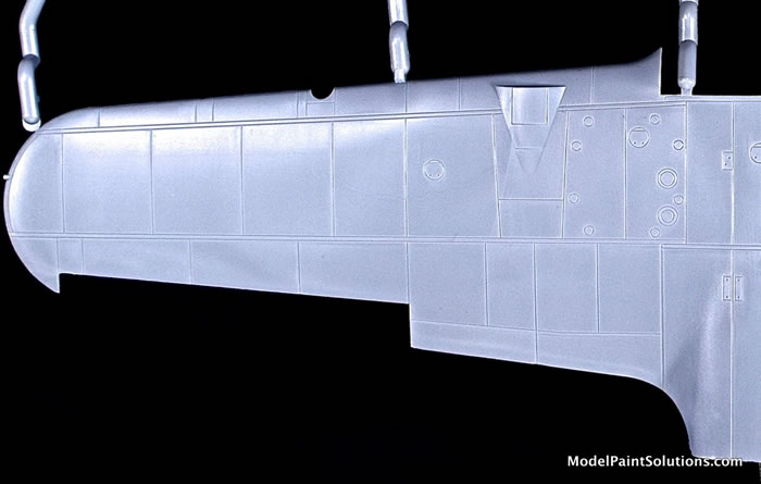 Next up are the underwing nacelles that house the engines, mounts, and main landing gear. Interestingly, these are assembled onto the bottom of each wing from multiple pieces. The nicely molded radial engines each with multi-part exhausts will look very convincing under paint and washes. With the addition of the multi-part forward cowls assembly of the airframe is largely complete.