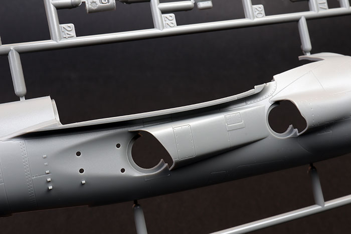 The cockpit detail is nice straight from the box, with raised detail on the side consoles and instrument panels; and excellent moulding on the sides of the ejector seat. Photo-etched harness straps are also included.