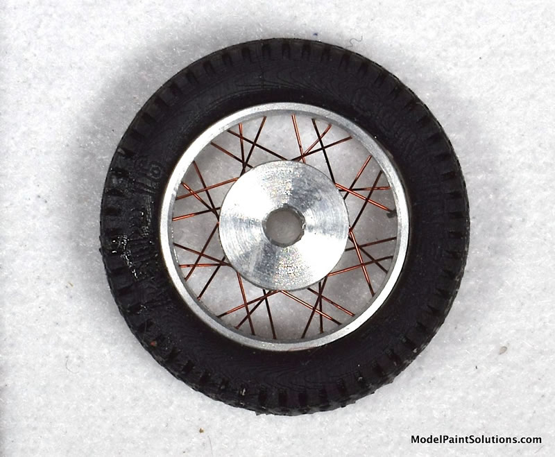 These UMM wheels are truly little pieces of modeling art that come alive under a coat of paint and a little weathering. Care needs to be taken if you decide to remove the wheels from the tires but with a little patience, this not a difficult job. Now that the wheels are done, I guess I’ll have to finish the rest of the motorcycle:) More to come….