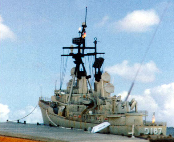 All the antennas, TARTAR launchers, MK47 launchers, ASROC launchers,