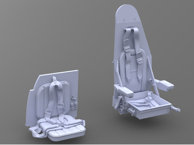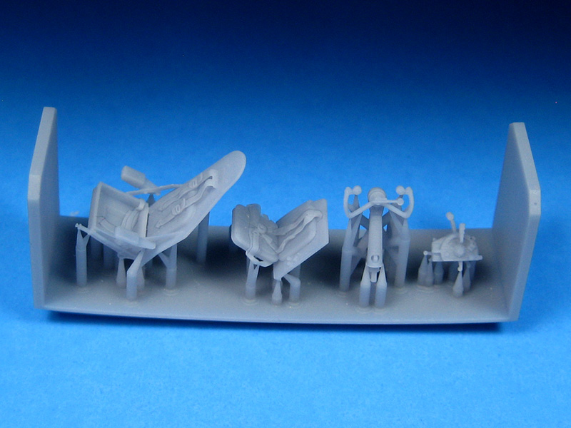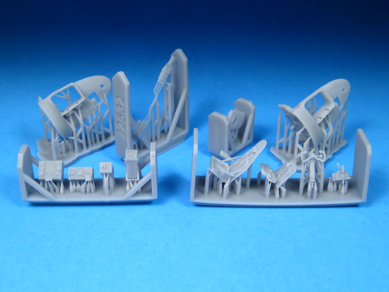 This set consists of new, detailed pilot's and navigator's seats, complete with molded-in late war harness, radios, throttles, Gee unit, control column, floor section with cutout for the separate entry hatch, and switchboxes with cable runs. Cockpit can be configured with or without the Gee navigation units..This set does not replace the whole cockpit, but gives you all the major details in a quick and easy to install format. Designed for Airfix PR/B Mk XVI kits, but can be adapted for use in the Matchbox and Special Hobby kits. CAD by Mike O'Hare