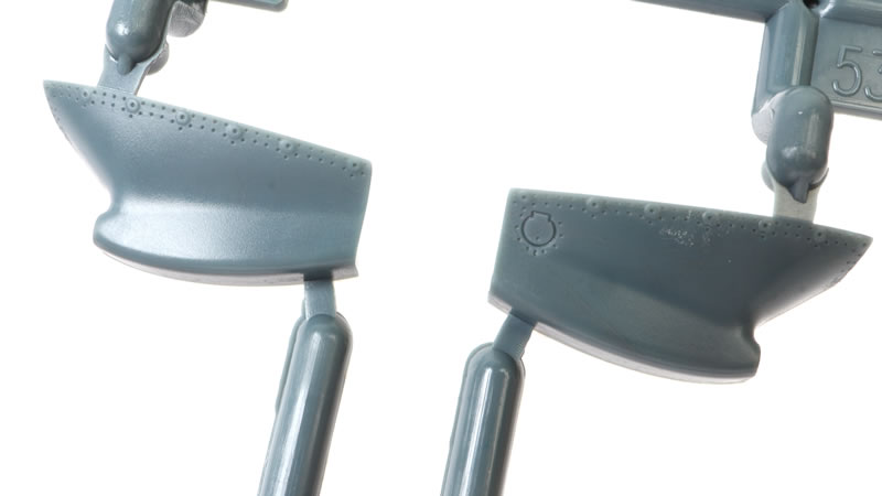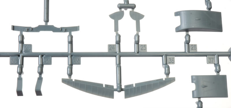 The first thing you will notice as you remove the sprues from their bags is the exuisitely subtle and crisp surface textures. Recessed panel lines, rows of rivets and shrewdly executed fasteners. The photos do not quite do justice to the subtlty of the textures.