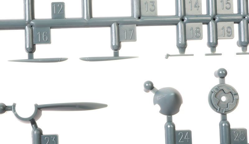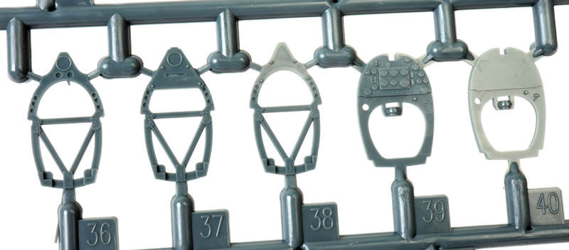 High level of detail; outstanding surface features including crisply recessed panels and subtle raised and recessed rivet lines where appropriate; separate parts for different styles of closed and open canopies; many options for Spitfire Mks. I to V. |
