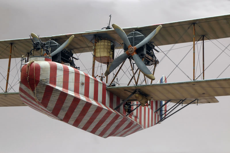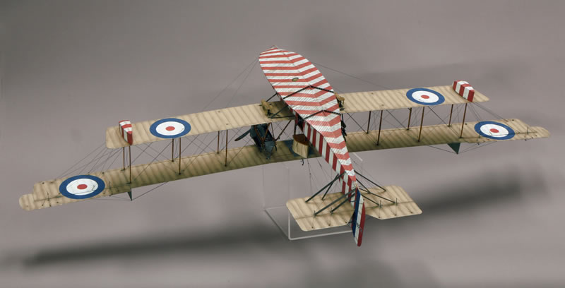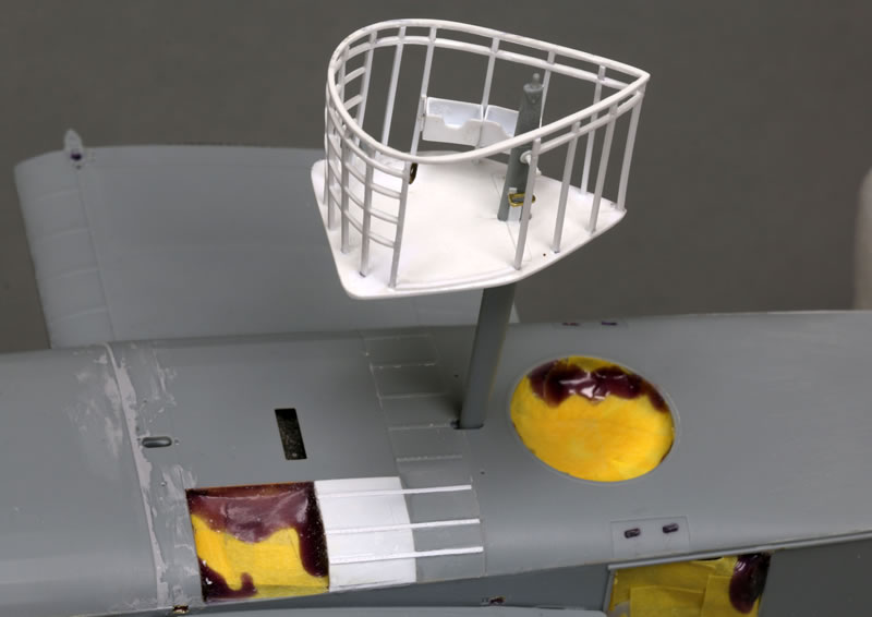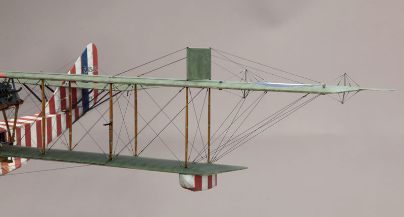 There was a little ladder that connected to the fuselage. I've presumed that the plywood walkway that runs over the top of the fuselage would have been extended forward on the port side to avoid the danger of the crew damaging the stretched canvas area that's normally between the walkway and the open hatch. I created all the markings using masks, including the serial number on the tail, and also added some red stripes on the top wing which are barely visible on the original photographs and which were, presumably, to remind the top gunner not to shoot through his own propellers, which would have been rather inconvenient.