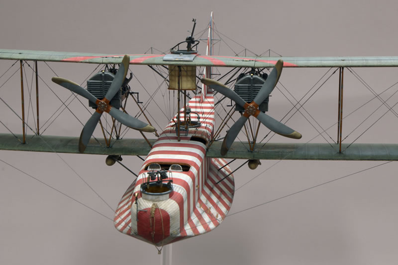 On the original aircraft this meant that the usual format 25 gallon auxiliary petrol tank was changed so that it surrounded the gunner. I imagine that this extra firepower was useful against the deadly Hansa-Brandenburg fighters that plagued allied flying boats like this, but with them and the notoriously leaky petrol pipes on these F.2a’s the hapless gunner in this position must have been brave beyond words.