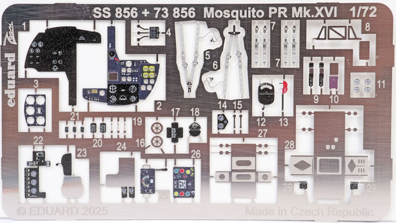One fret covers the cockpit interior and is partly colour printed for various items such as the instrument panels and seat belts, the camera controls as well as levers, pedals and all manner of bits and bobs that should test your gluing and tweezer skills. The final cockpit interior should look wonderful in the end.