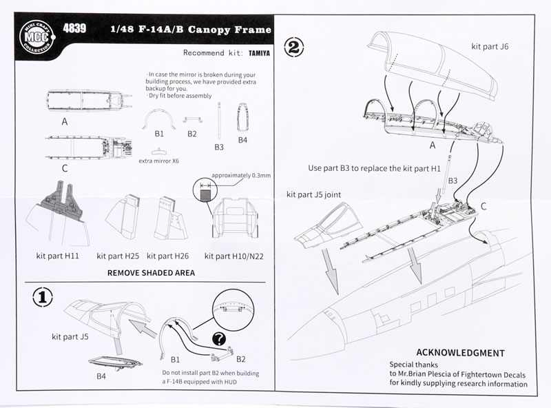 MCC has just released two 1/48 scale replacement canopy frame sets - one for the Tamiya F-14A/B kits and one for the Tamiya F-14D kit.