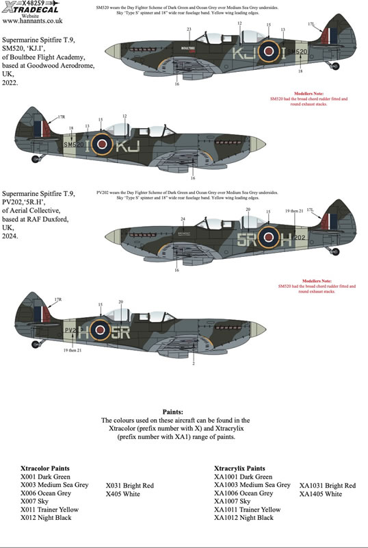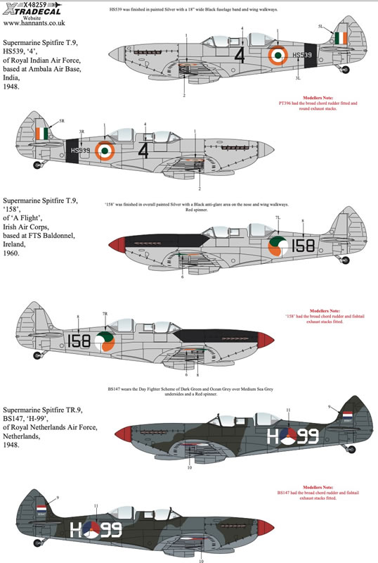 Xtradecal Item No. X48259 - Supermarine Spitfire T.9 Pt. 1 Collection