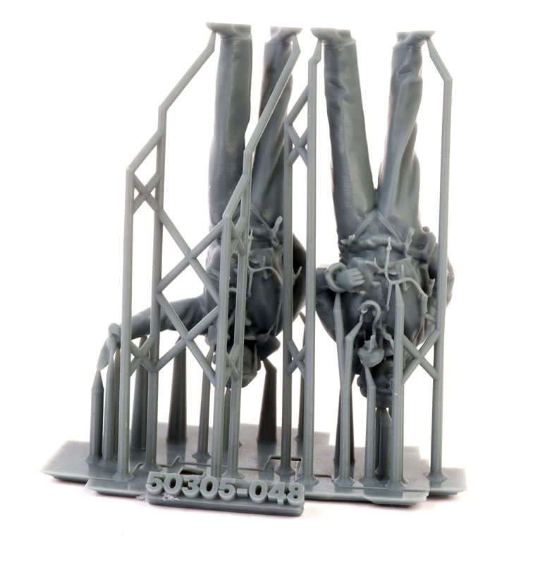 I removed the figures from their attachments one set at a time using a new hobby blade and a quality set of sprue cutters. This was a fast and easy job. I cut the points close to the bodies of the figures using the sprue cutters and they were quickly freed with almost no residue.