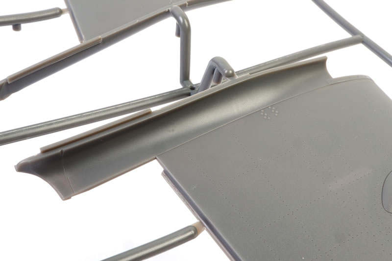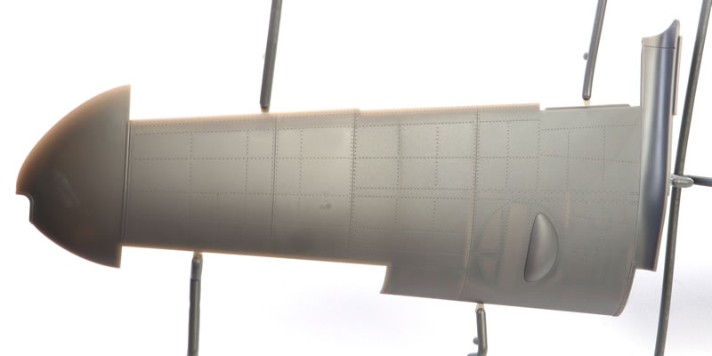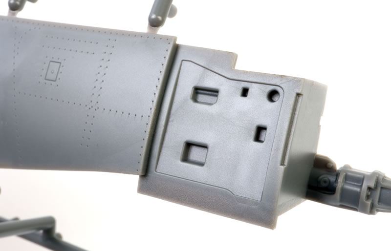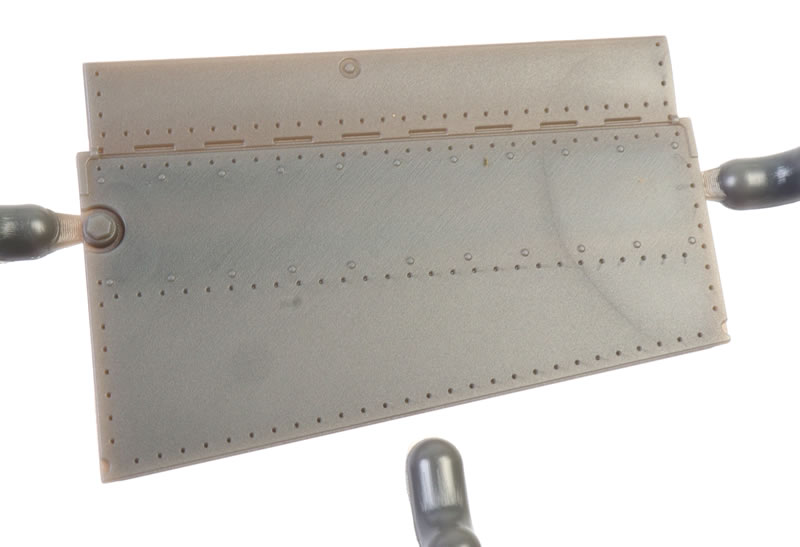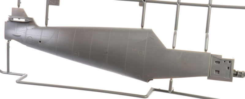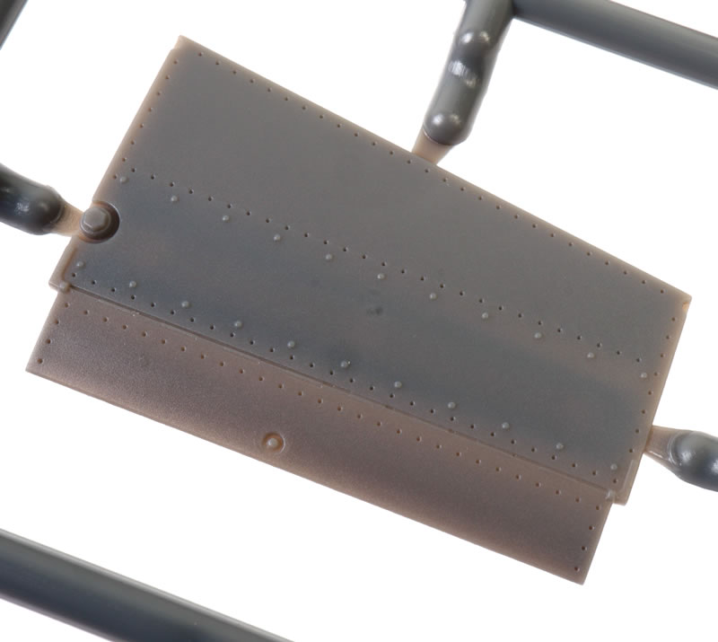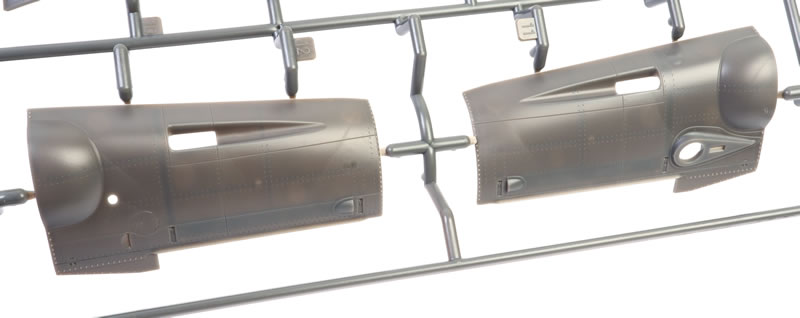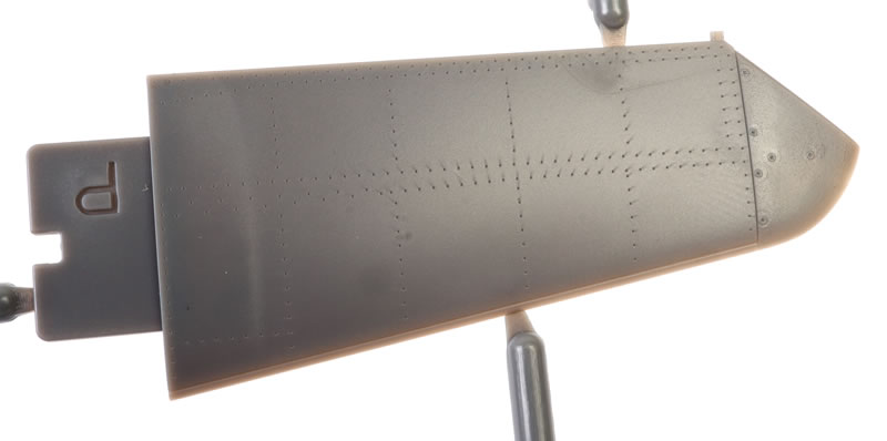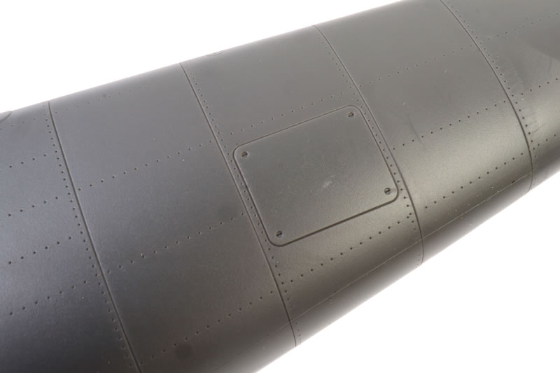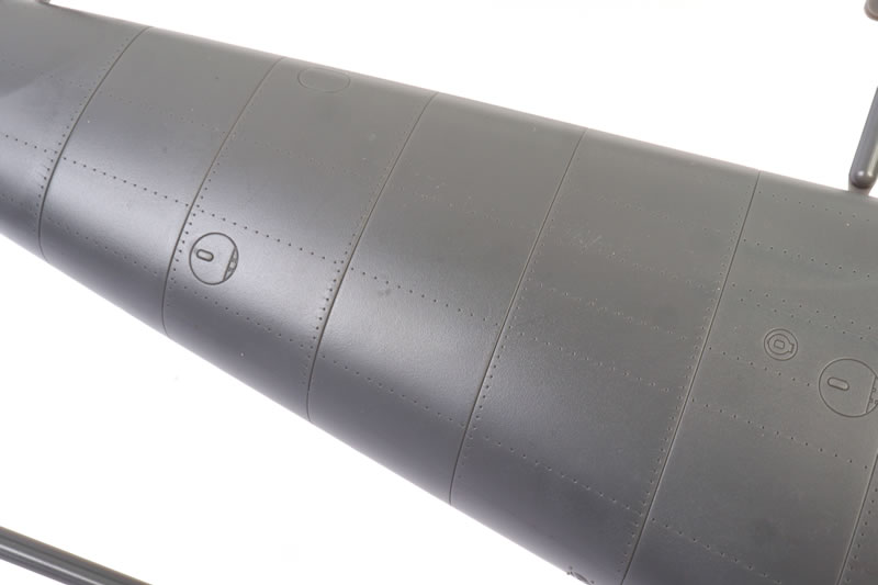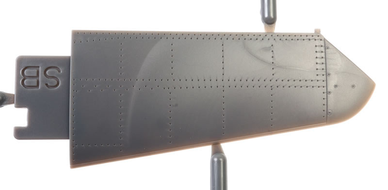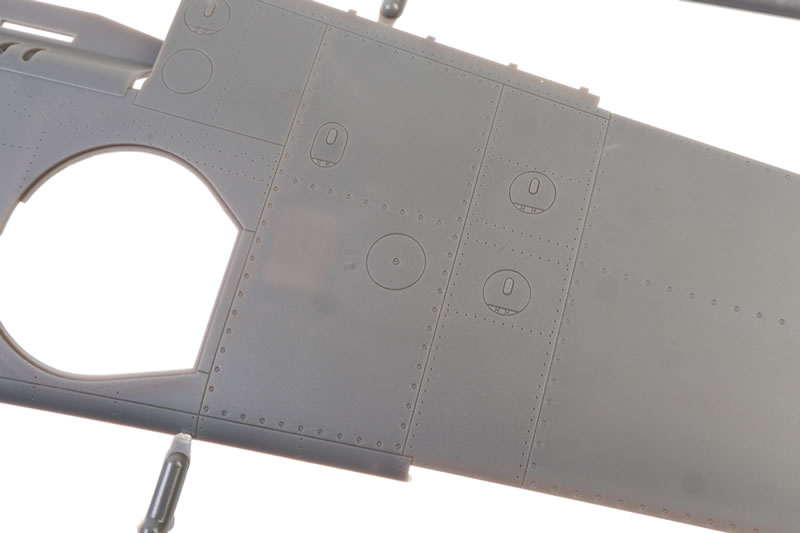 Surface textures are very fine with recessed panel lines and rows of rivets.