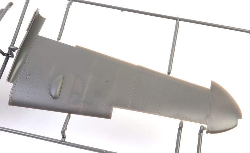 I have heard a few reports of the kit suffering warpage in various places. Checking my kit, I did not initially find any problems, but on closer examination there is some warpage on the top trailing edge of one of the ailerons, Part E4.