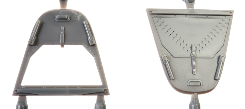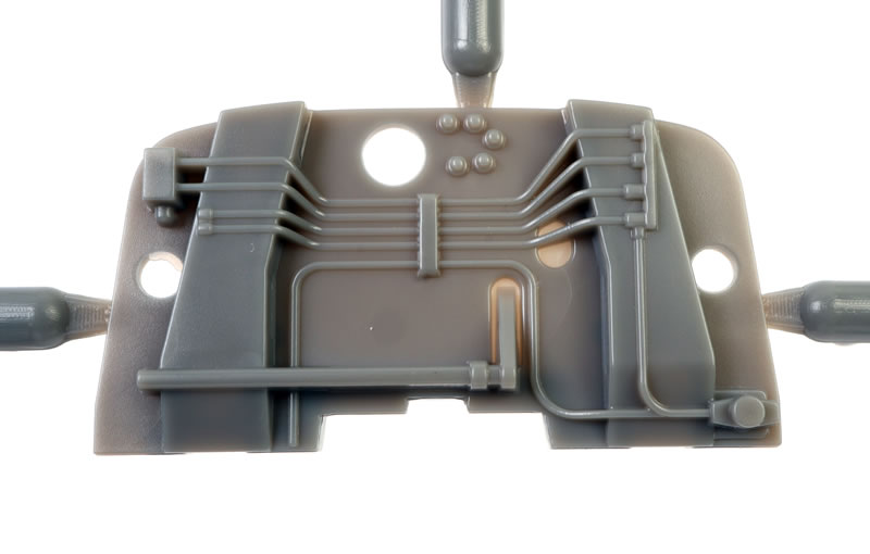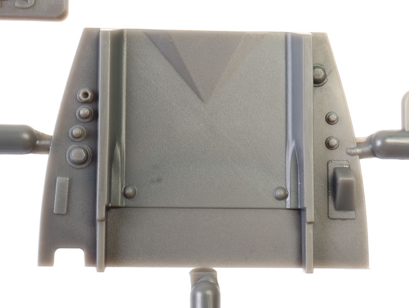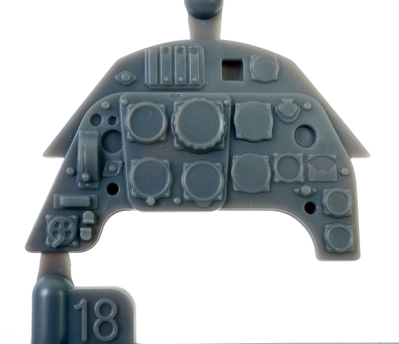 Two styles of instrument panel are supplied – Early and Late. They both have raised bezels and switches with flat circles representing lenses. Individual decals are offered for instrument dials and ammo counters.