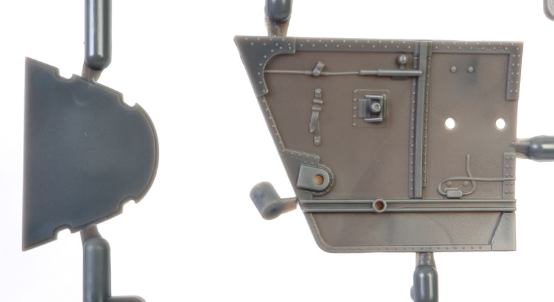 The cockpit sidewalls start out reasonably bare but they will be quickly filled out with layers of detail including the switch box, throttle quadrant, trim wheels and chains, oxygen regulator and hose, supplementary instruments and a clear plastic fuel line on the starboard sidewall.