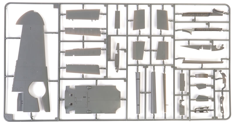 393 medium grey plastic parts, 22 clear parts, self-adhesive die-cut masks, decals for five marking options, glossy colour and markings guide and a 44 page, A4 instruction book. |