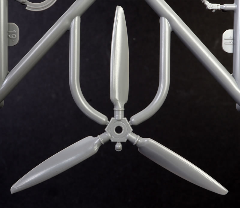 Three styles of propeller spinner and two propeller blades - de Havilland and Rotol - are offered for this boxing.