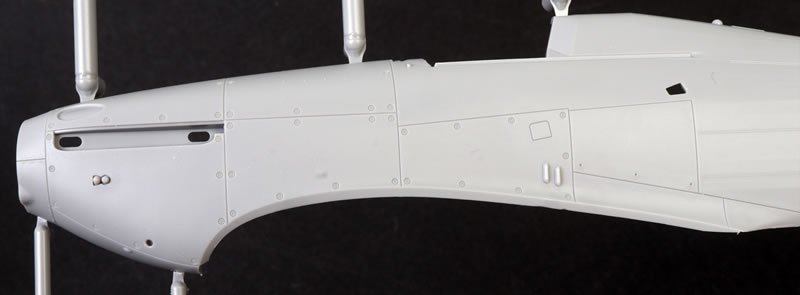 The only visible imperfection that I could find was a couple of shallow sink marks on the mid-upper starboard fuselage.
