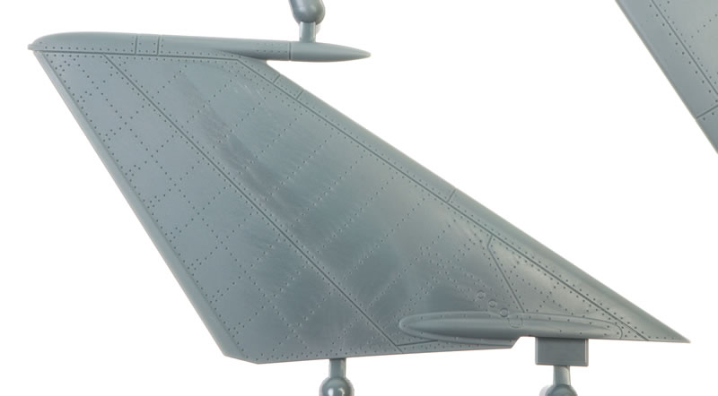 Once you subtract the unused pieces and the 66 items on the ordnance sprue, the unarmed airframe boils down to a very reasonable 129 grey plastic parts.