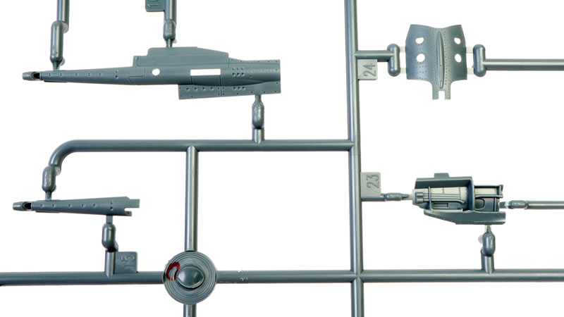 This is a modern, long-run kit with all the expected amenities—positive locating pins, tabs, slots and thoughtful engineering throughout. Self-adhesive masks are provided for the canopy, wheels and the two small cockpit quarter windows.