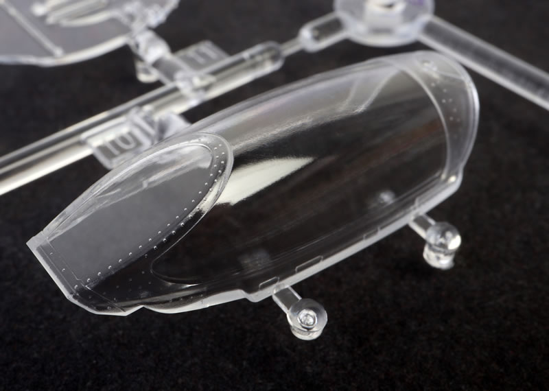 The clear parts are thin, sharp and free from distortion. The windscreen is separate, allowing the canopy to be posed either open or closed.