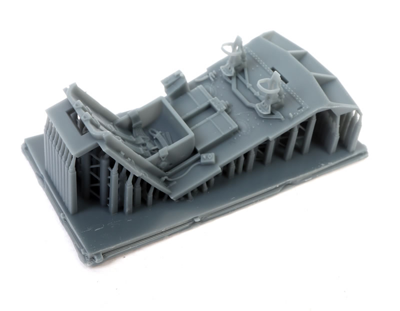 The resin parts also include a squared-off box behind the pilot’s head. On the Bf 109 G this covered the main battery; however, on the Avia S-199 it usually housed radio-related electrical equipment, with layout varying by production batch and radio fit. The cover itself was simply reused unchanged from the Bf 109 G.