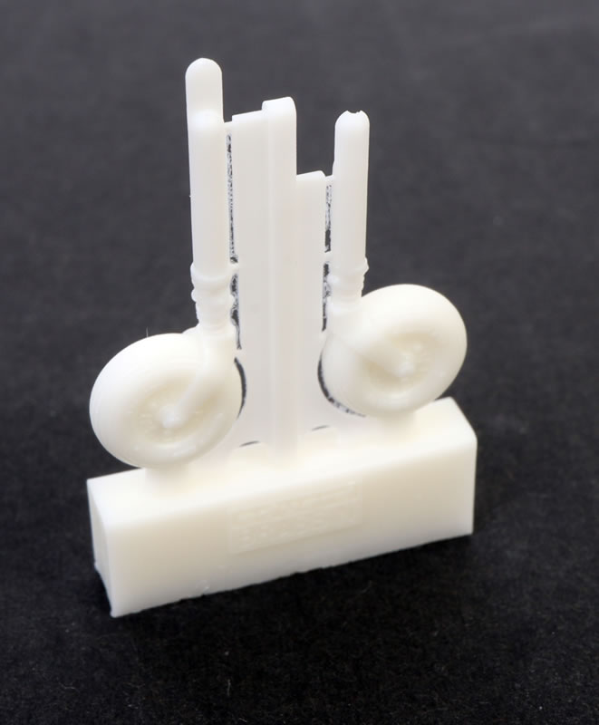Long and short one-piece tail-wheel struts are supplied in white resin, presumably reinforced.