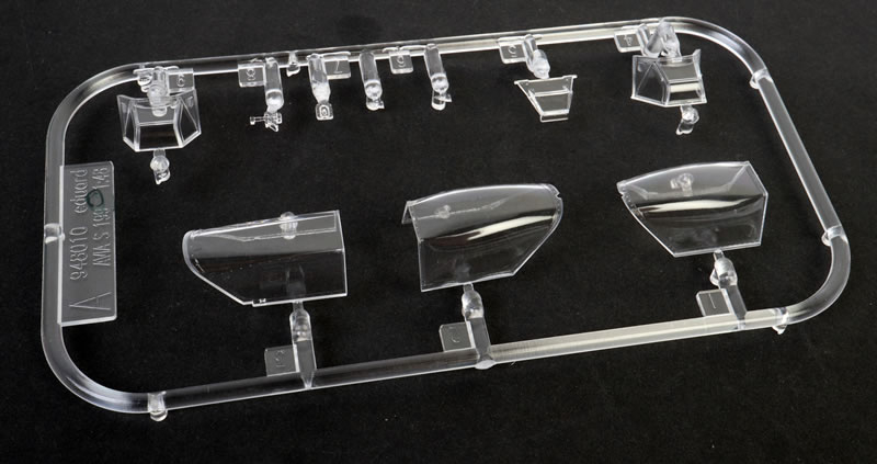 Clear parts include two styles of windscreen, one Erla Haube canopy, the Galland Panzer armoured glass panel, gunsight, navigation lights and the isolated mount for the underwing Morane mast. Two later versions of the blown sliding canopy are also supplied but are not used in this boxing.