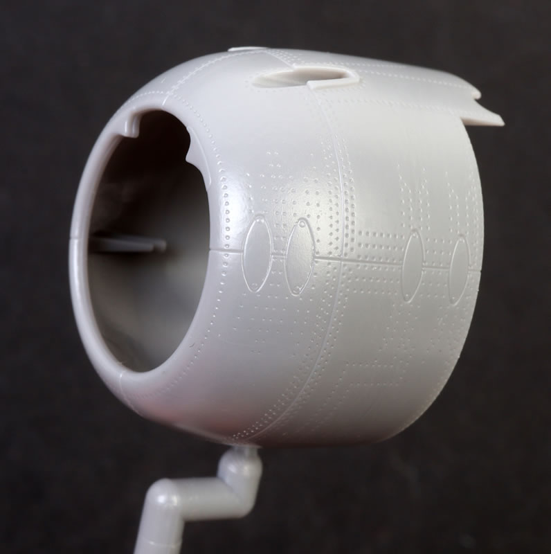 Surface textures combine finely recessed panel lines with subtle rows of rivets—delicate, consistent, and convincing.