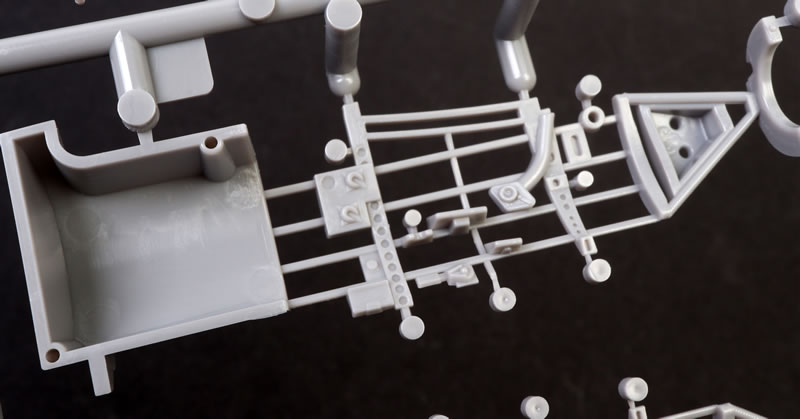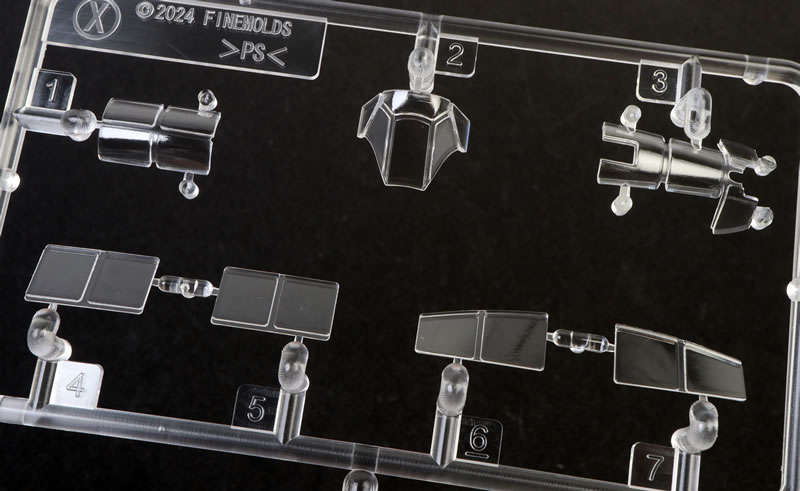 Clear parts are presented on a single sprue. They are thin, crystal-clear, and distortion-free, allowing the sliding canopy to be posed open or closed.