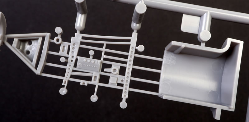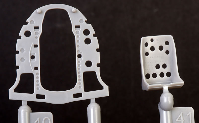 The instrument panel features crisp raised detail with optional decal overlays for the dials. Once painted and dry-brushed, it should look good.