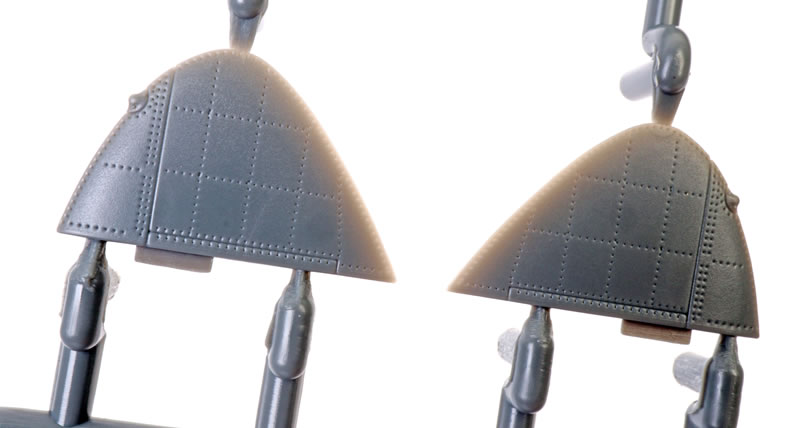The fasteners are visible on the real aircraft (this time Temora's Mk.XVI, which features flatter paintwork) but if the kit representation is not to your taste it will be a simple matter to sand them down.