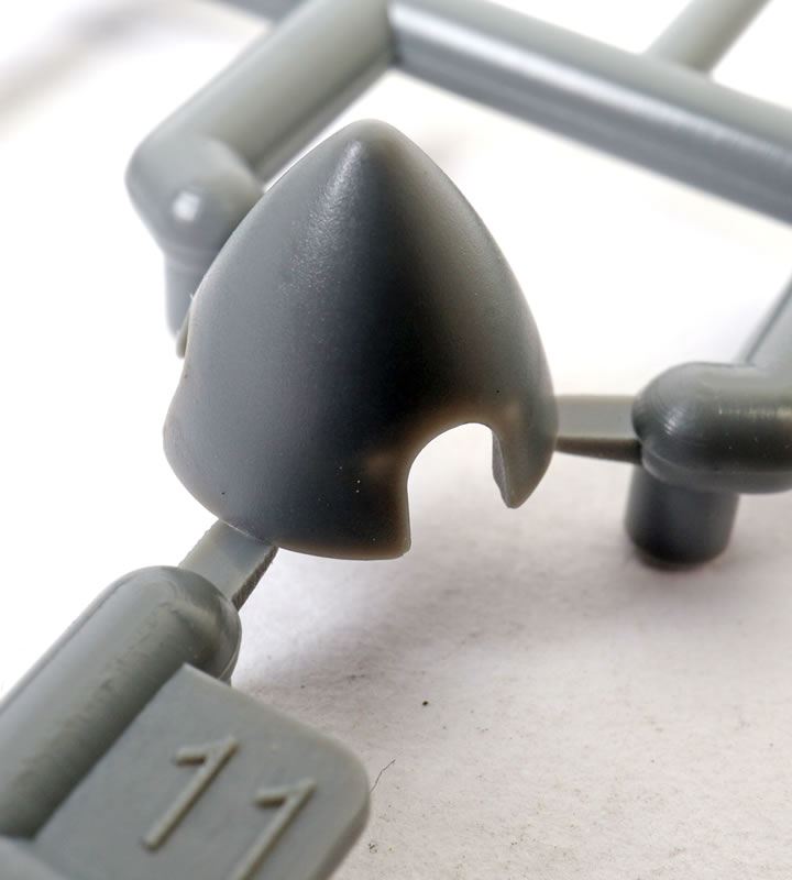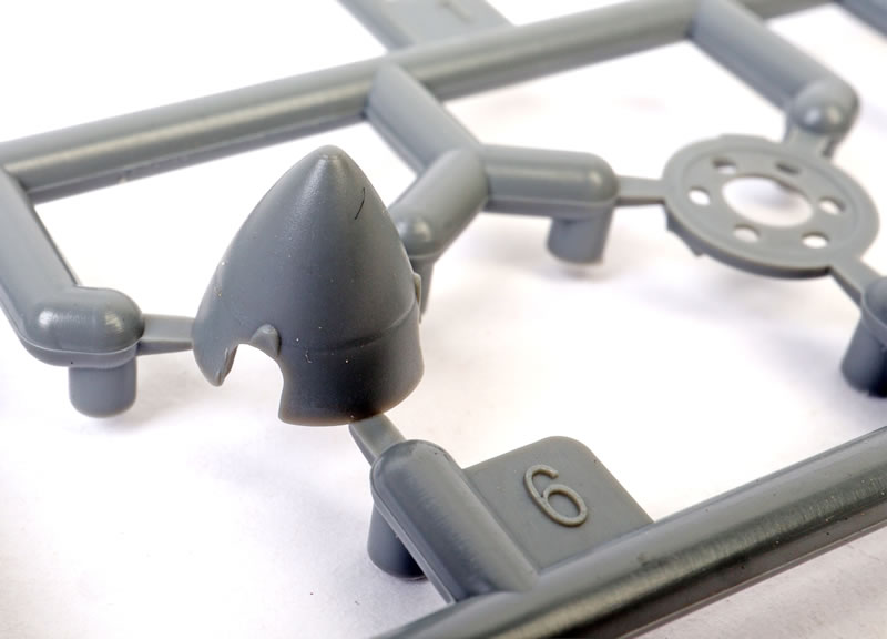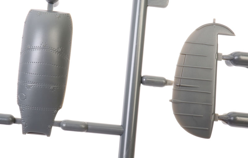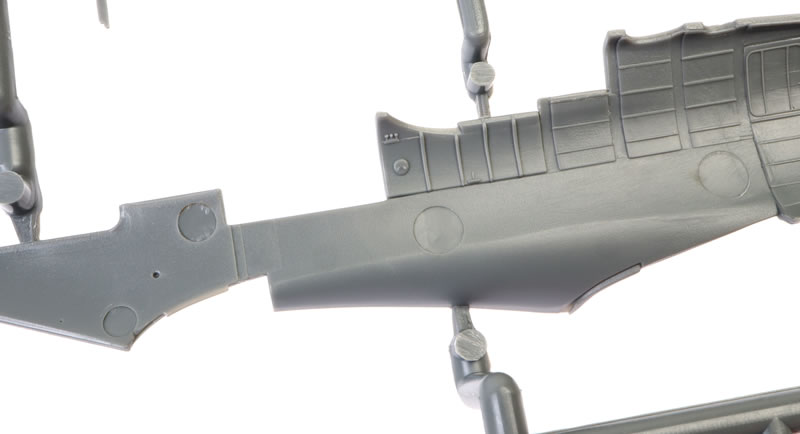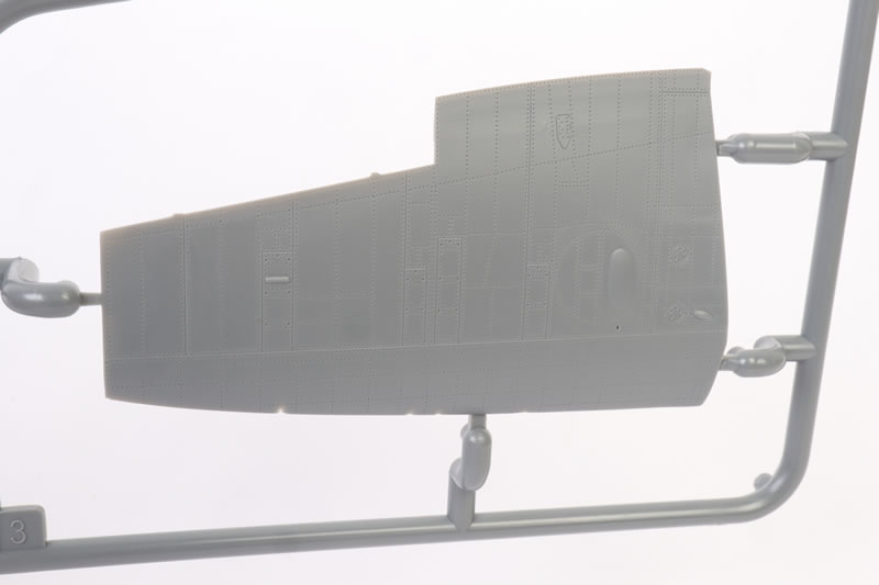 The upper wings feature the kidney shaped bulges to accomodate the main wheels. Machine gun access panels are moulded shut.