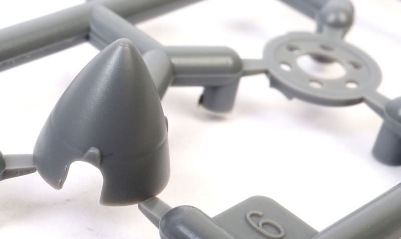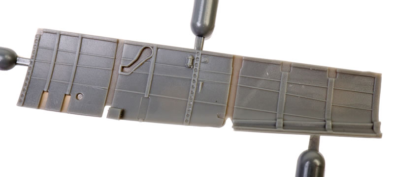 The upper wings feature the kidney shaped bulges to accomodate the main wheels. Machine gun access panels are moulded shut.