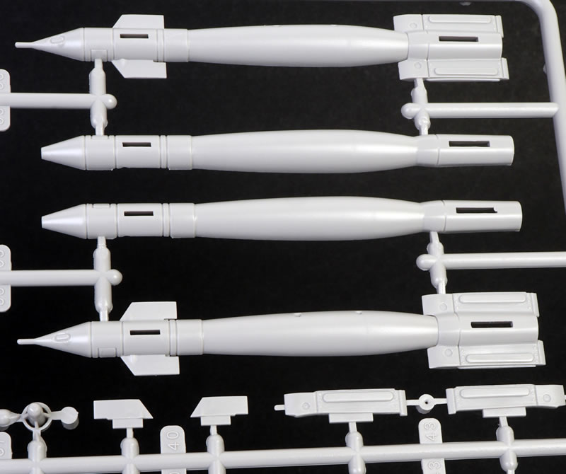 Italeri has added two new identical plastic sprues (Sprue N) that contain two 1,000 lb bombs. Other early-production GR.1 characteristics are either already on the sprues or will require some minor surgery.