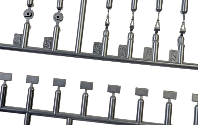 Convincing surface textures including recessed panel lines and rivets; high level of detail; dropped or raised flaps and speed brakes; alternative parts for canopy, engine display, PR nose and more; perfectly printed decals; good outline and detail accuracy. |