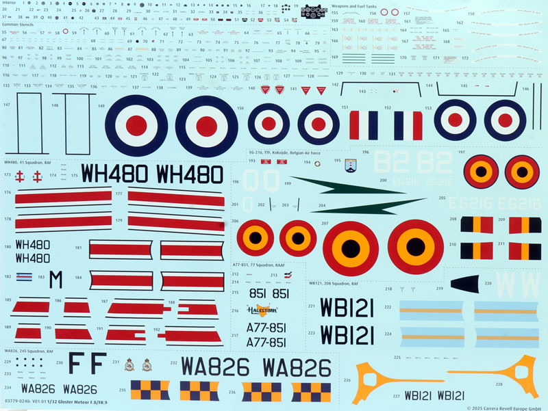 Revell’s 1/32 Gloster Meteor F.8 / FR.9 First Edition is a landmark release in large-scale British jet modelling. It offers an impressive balance of detail, accuracy, and versatility, from the busy, authentic cockpit and fully modelled engines to the multiple canopy, intake, and armament options.