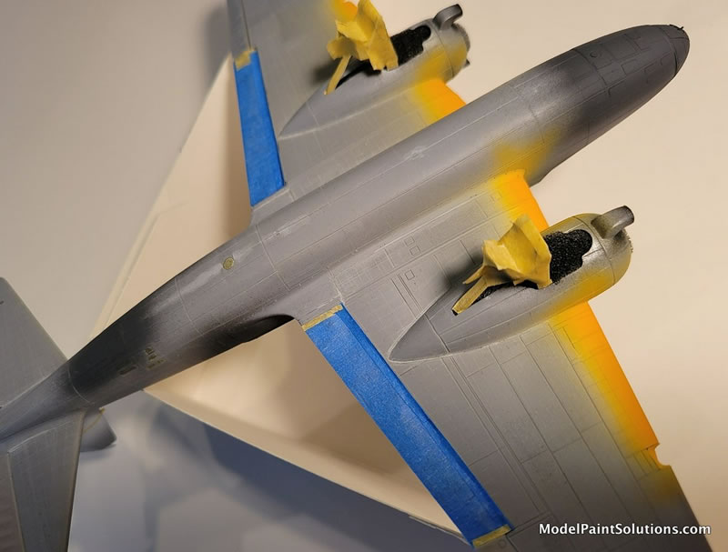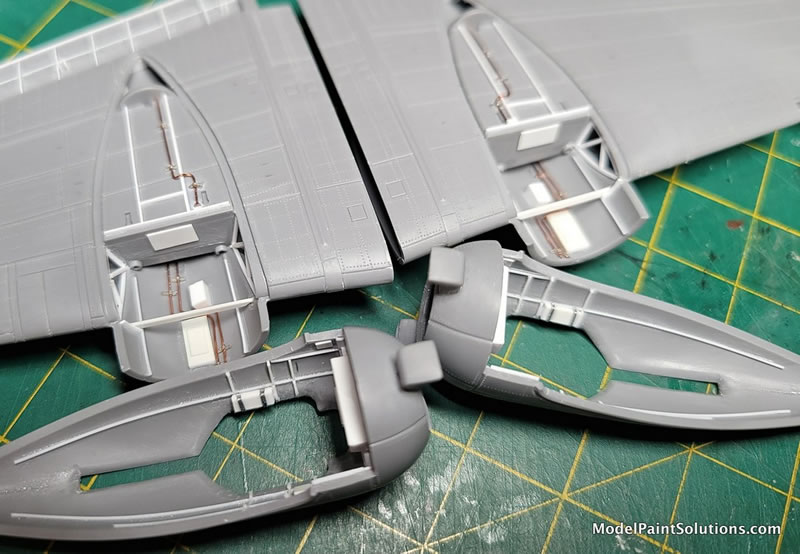 One more note  - ICM has you attach the landing gear before the engine nacelles are glued into place. I don’t like doing this because then you have to mask the landing gear, and they’re just hanging out there begging to be broken off. I tried temporarily fitting the nacelles in place to see if they could be added later, but even though the answer is a hesitant ‘yes’, I couldn’t’ be confident enough that all points were attaching securely. So in the end I decided to attach them ahead of time and take the risk. As it turned out, it went okay this way.