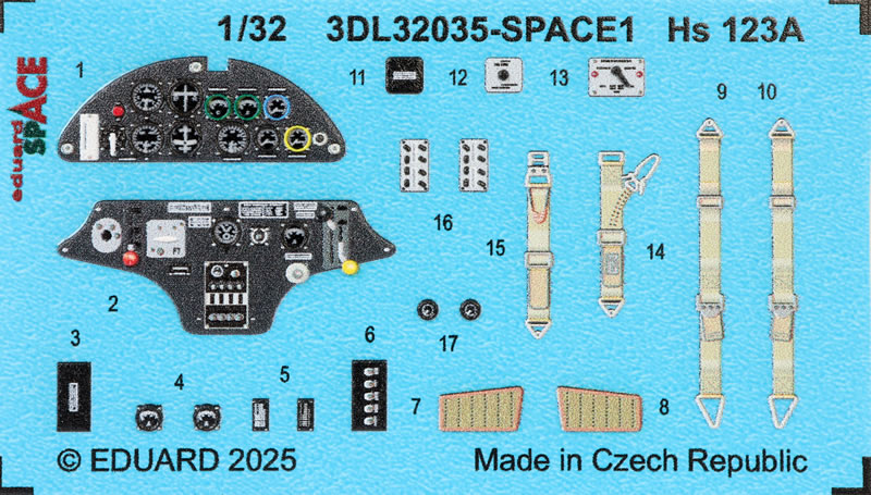 Eduard has produced a range of accessories for the 2025-released ICM scale Henschel Hs 123 A kit.