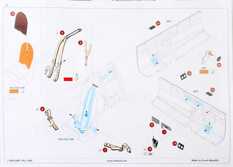The use of the photo-etched frets, or the 3d printed SPACE package, will result in a noticeably better detailed cockpit, especially for the instrument panel and harness straps.