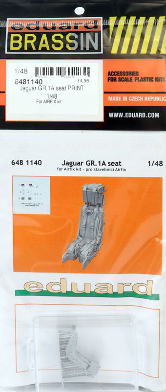 Eduard's 1/48 scale Jaguar GR.1A seat comprises a single part in 3d printed resin, a decal sheet and instructions.