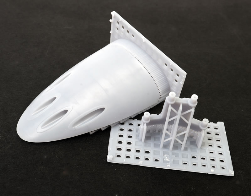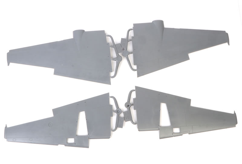 The wings are supplied as separate port and starboard upper and lower sections. These four parts are supported and aligned by a substantial nine-part wing spar assembly. Separate ram-air intakes and louvres are also included.